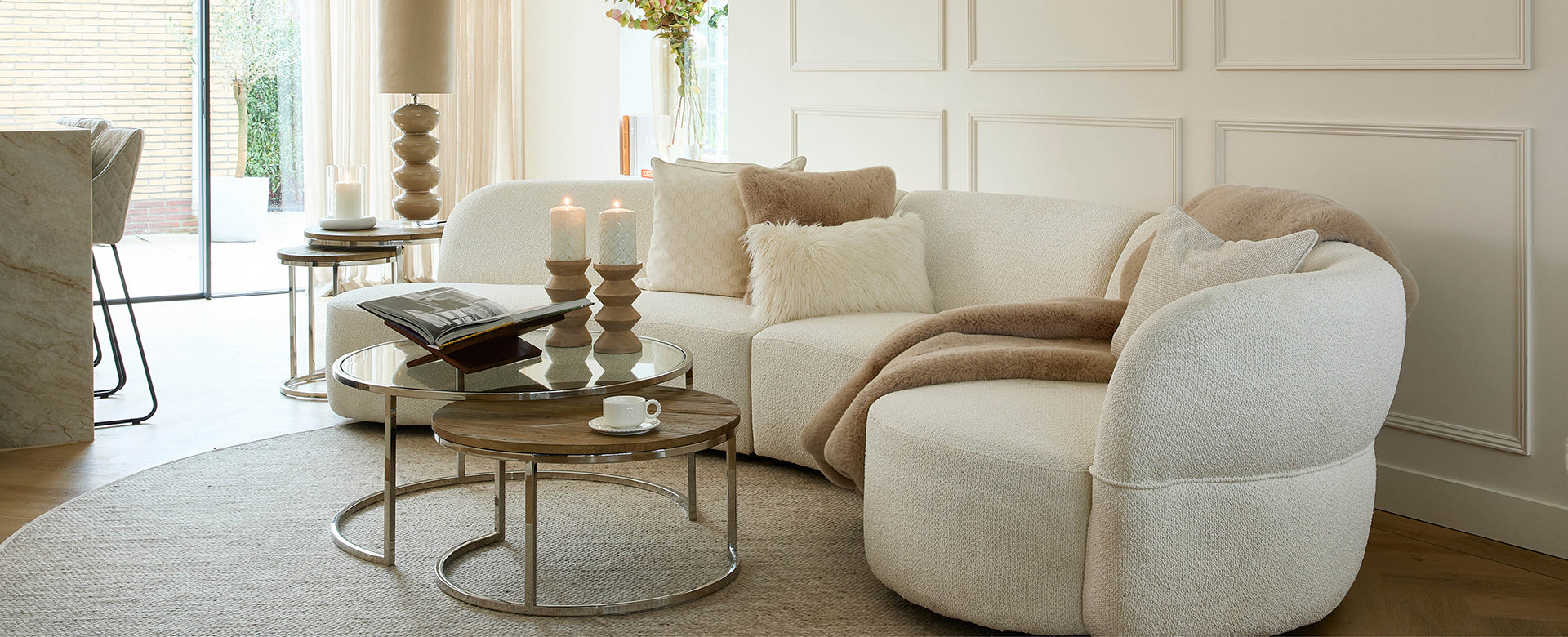 No, moguće ga je i kombinirati s dvodijelnim, polukružnim stolićima iz iste linije, čime se stvara zanimljiva, slojevita kompozicija.
